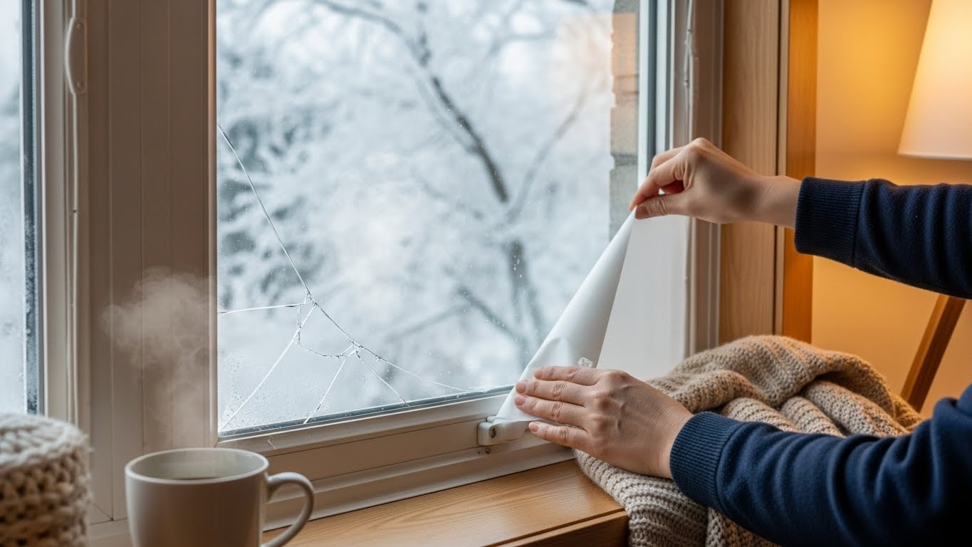 창문 단열 뽁뽁이, 커튼, 문풍지 설치